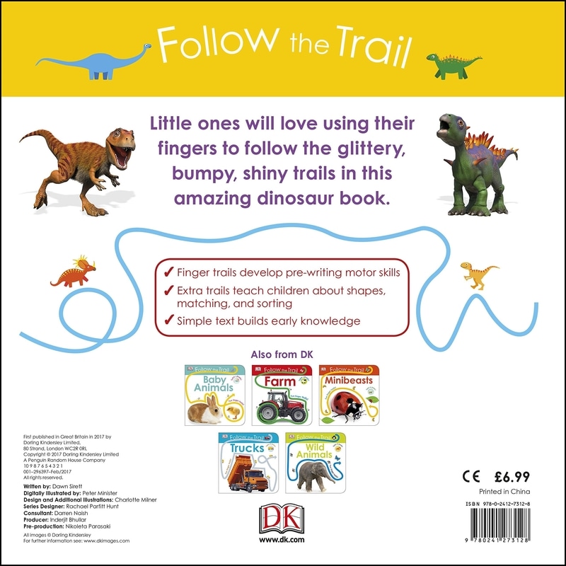 Little ones will love using their fingers to follow the glittery, bumpy shiny trails in DK's Follow the Trail Baby Dinosaurs. This tactile baby book is packed with colourful illustrations to help encourage early learning.