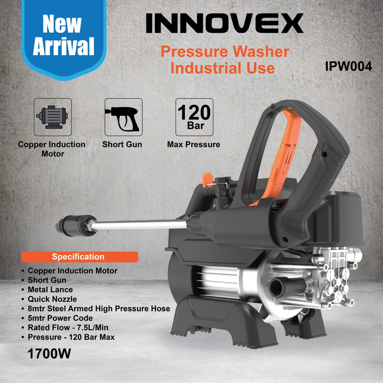Innovex 1700W 120 Bar Pressure Washer – IPW 004