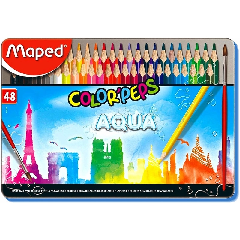 Maped Aqua Color Peps 48 Color Pencils in Metal Box