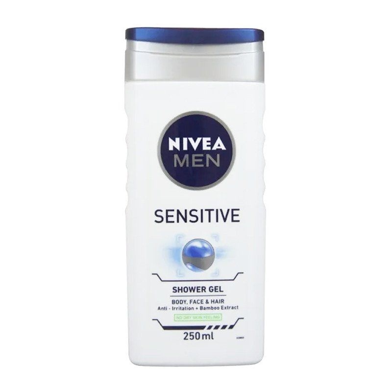 NIVEA MEN Sensitive Shower Gel. This formula is especially developed to care and look after sensitive skin. Life van be irritating when you’ve got sensitive skin, which is why NIVEA has made this soft and skin-friendly formula. Our caring formula with its invigorating scent provides your skin with long-lasting freshness. Leaves your skin and hair feeling revitalized and cared for. Avoid contact with eye area. Suitable for body, face and hair. pH skin balanced.