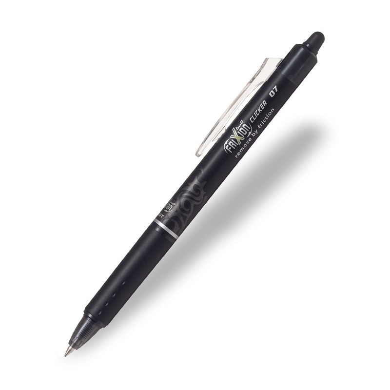 The Pilot FriXion Clicker is a retractable erasable rollerball pen that delivers precision writing and drawing from the 0.7mm fine tip. This unique product allows you to cleanly erase, delete and rewrite - all with the same pen. Simply rub out your mistakes with the eraser stud and watch the ink disappear as if by magic! The unique gel ink responds to the heat generated by the rubbing out, and lets you write over your mistake immediately with the same pen.